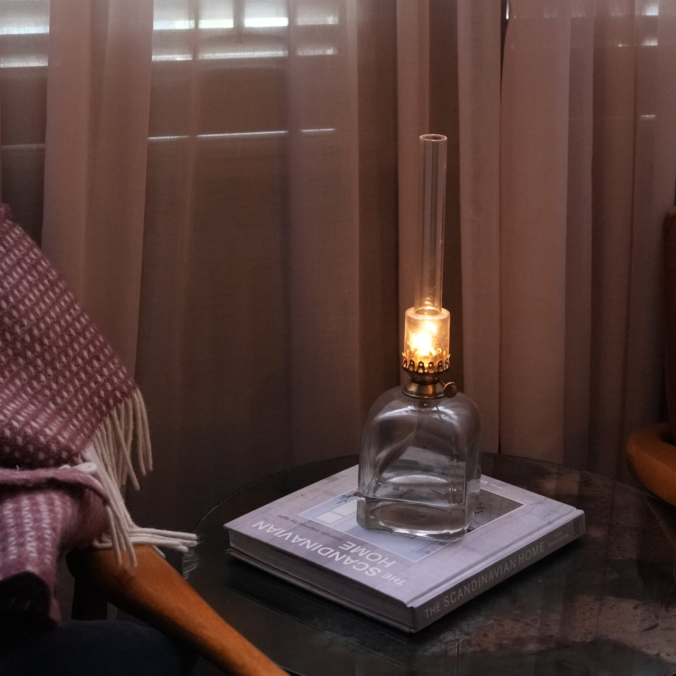Kerosene Lamp Elisabeth in Glass, Square w. Antique Brass 33cm